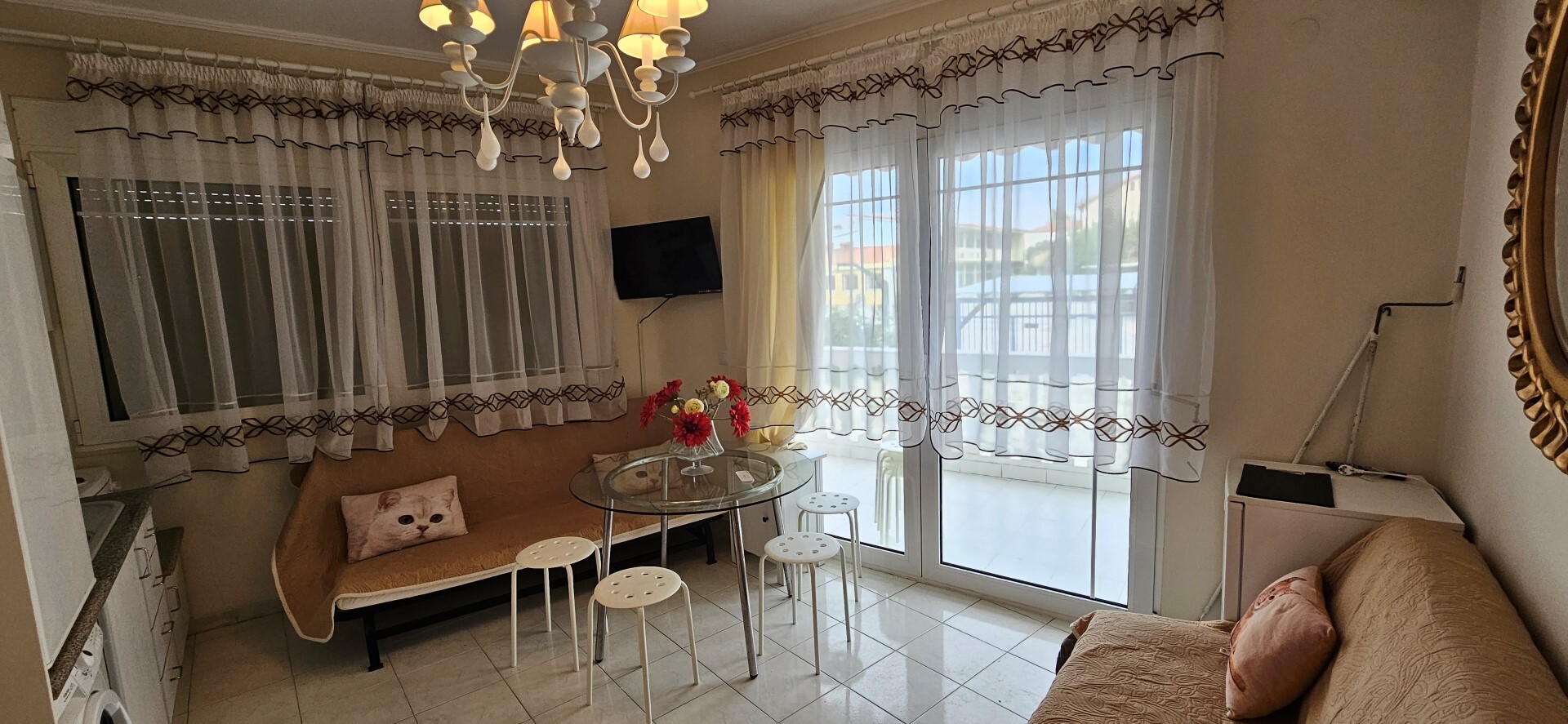 Na prodaju stan od 40 kv.m na Kasandri (Halkidiki). Stan se nalazi na prvom spratu i sastoji se od jedne spavaće sobe, dnevne sobe sa kuhinjom, kupatila sa tuš kabinom. Stan Je Raspored enterijer. Poseduje i nameštaj, klima uređaj.